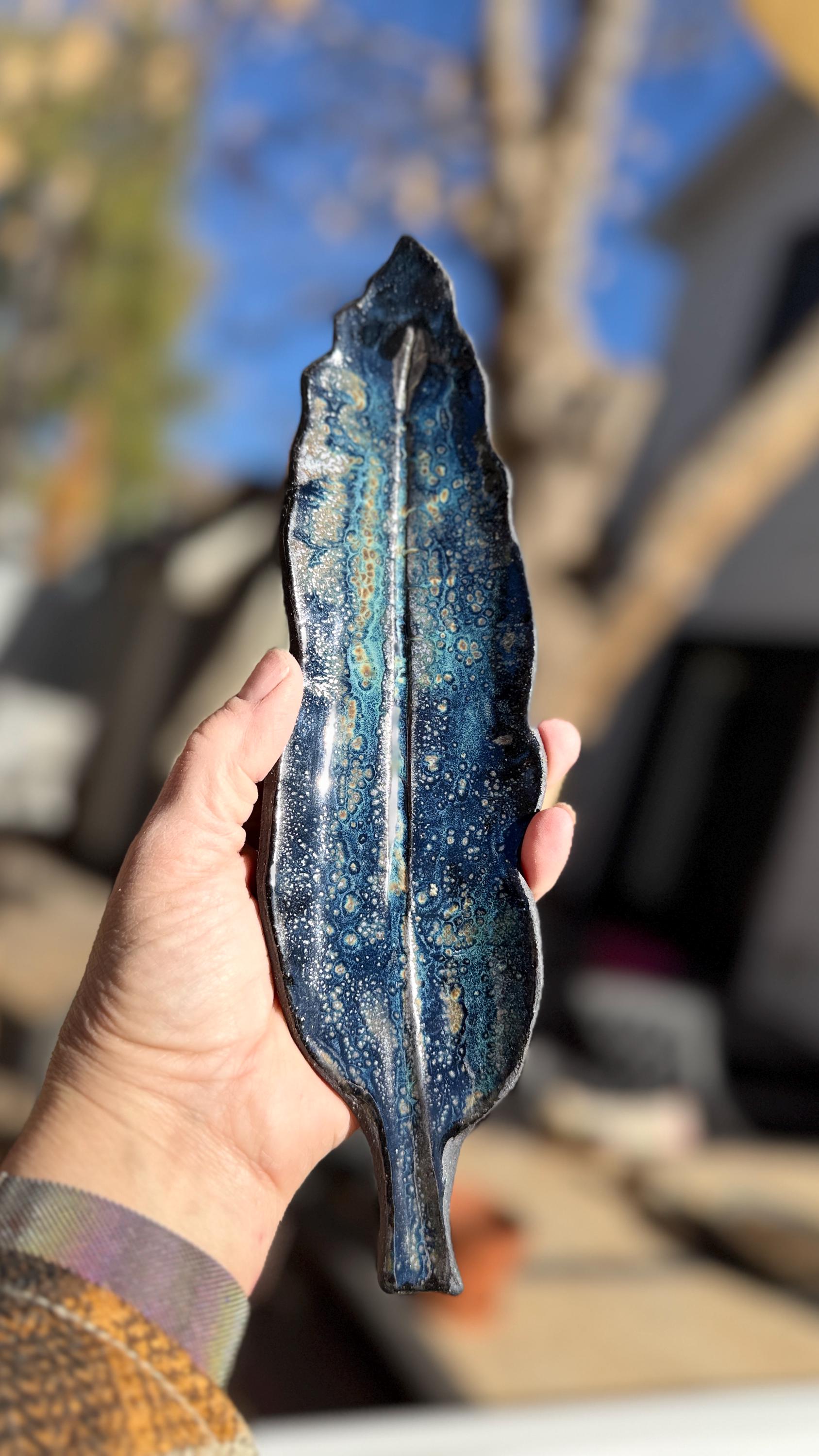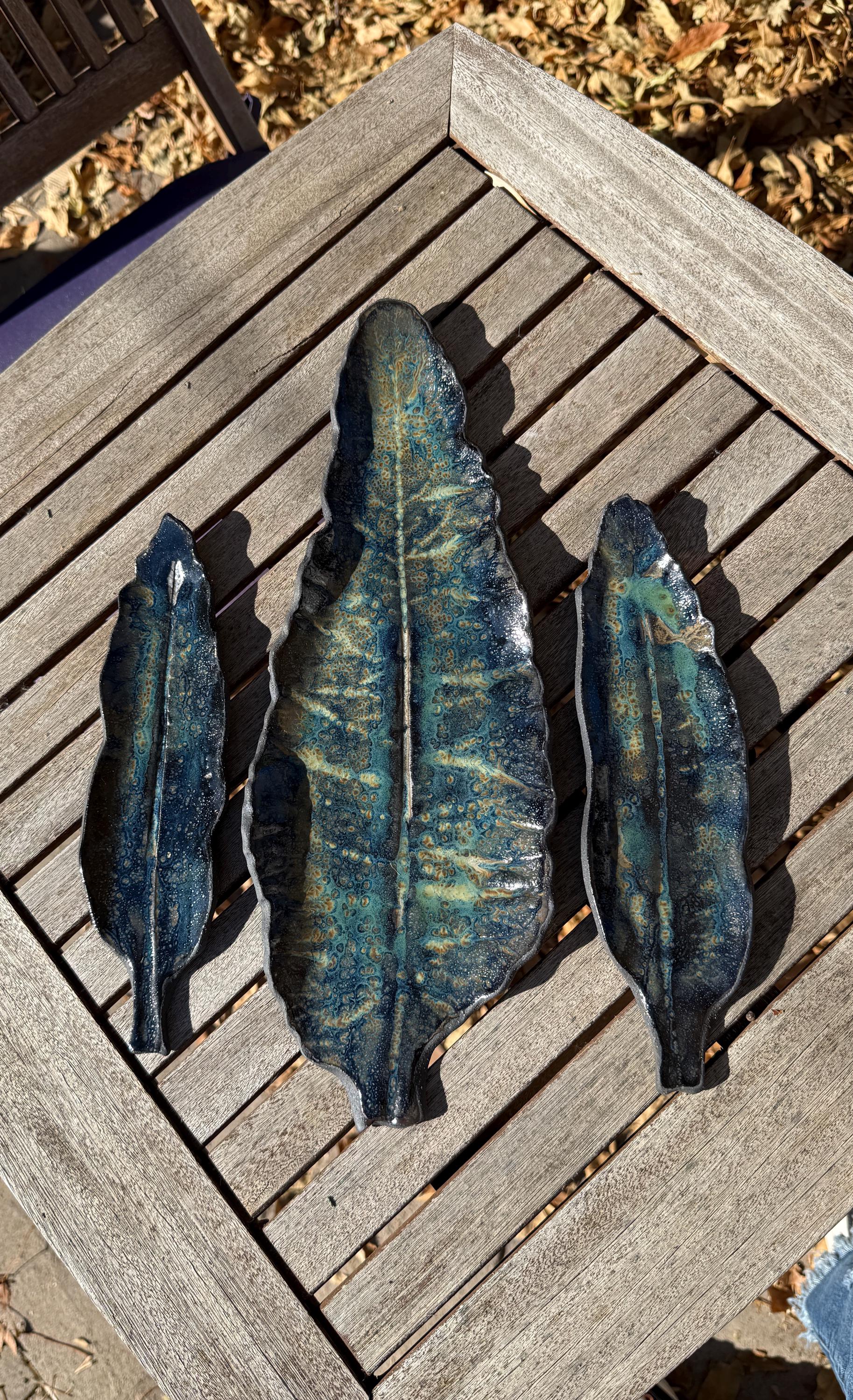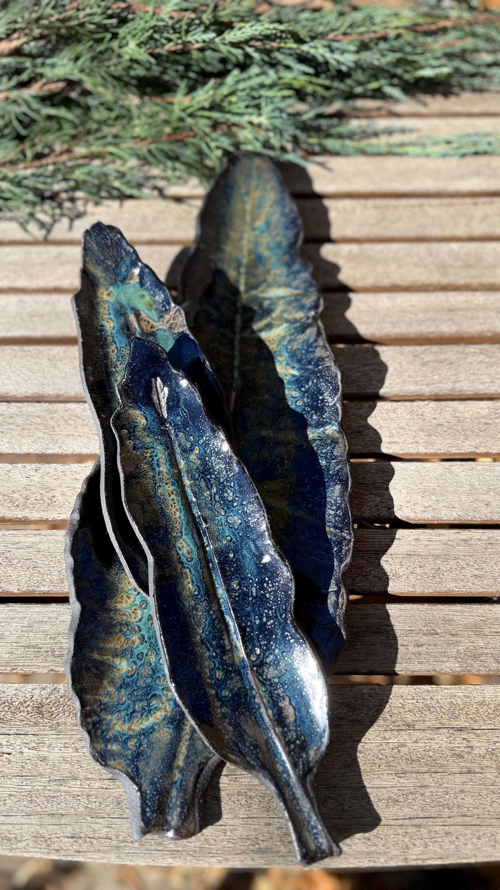 My handmade ceramic stoneware leaves are made from an imprint from real leaves grown in my Colorado garden creating a unique piece from nature. This leaf set is made from horseradish leaves and shaped as shallow dishes. They are ideal for serving food items such as sushi, appetizers, cookies, etc., or display as a unique decorative item in your home.